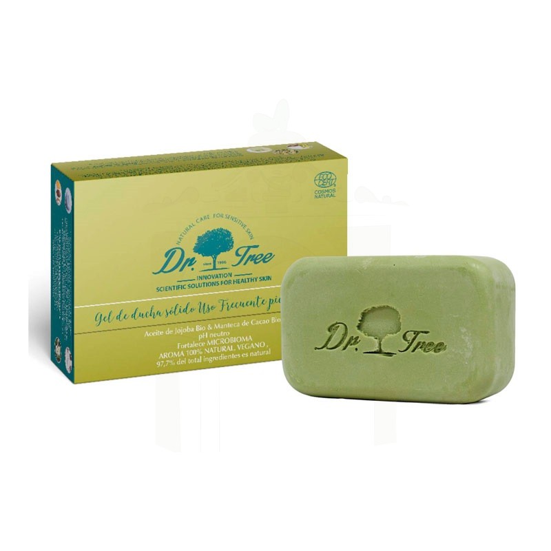 El gel de ducha de Dr Tree sólido es un gel concentrado con textura cremosa, no conglomerado que limpia, calma, hidrata y protege la piel de manera delicada.