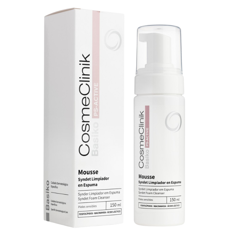 Basiko PS-Active Mousse es un limpiador syndet en espuma sin jabón para la higiene diaria de cara, cuello y escote.