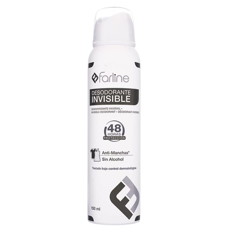 Farline Desodorante Invisible spray no mancha la ropa y garantiza una protección durante 48 horas.