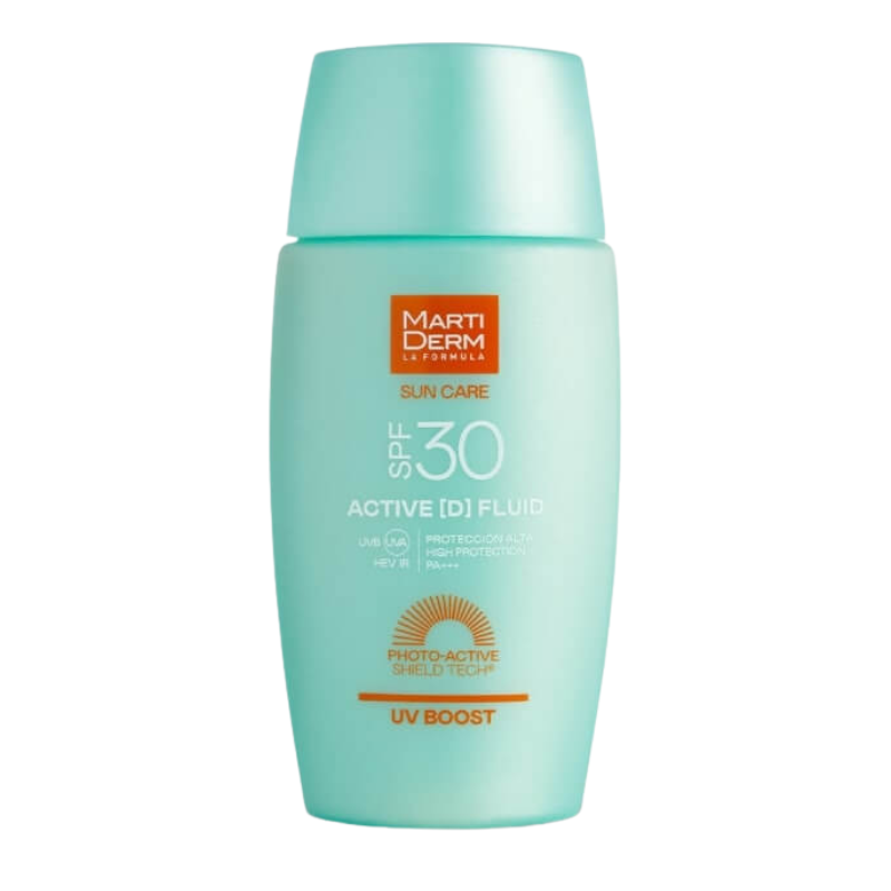 Martiderm sun care SPF30 active D fluid es un fotoprotector formulado con la tecnología exclusiva Photo-Active Shield Tech, que potencia