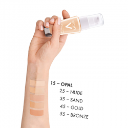 Gracias a sus propiedades elásticas, la textura de silicona tensora retensa las arrugas y sigue los movimientos del rostro para alisar los rasgos y conservar un tono unificado y luminoso durante todo el día.