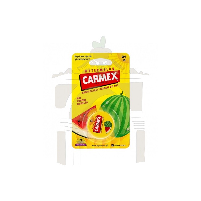 Aplica el bálsamo labial hidratante SPF 15 Carmex Watermelon en el labio superior e inferior con los dedos.