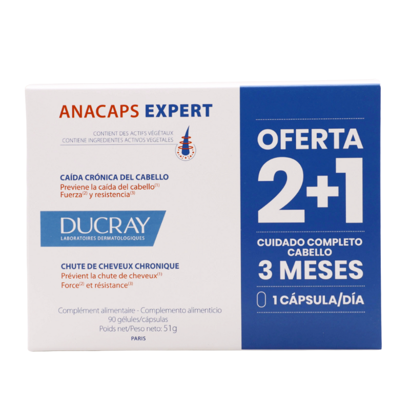 Ducray Anacaps Expert 90 Cápsulas es un complemento alimenticio formulado para fortalecer el cabello y las uñas desde el interior. Está diseñado para combatir la caída del cabello y mejorar su densidad y vitalidad, al mismo tiempo que fortalece las uñas frágiles y quebradizas. Ideal para hombres y mujeres que buscan un tratamiento integral para la salud capilar y ungueal.
