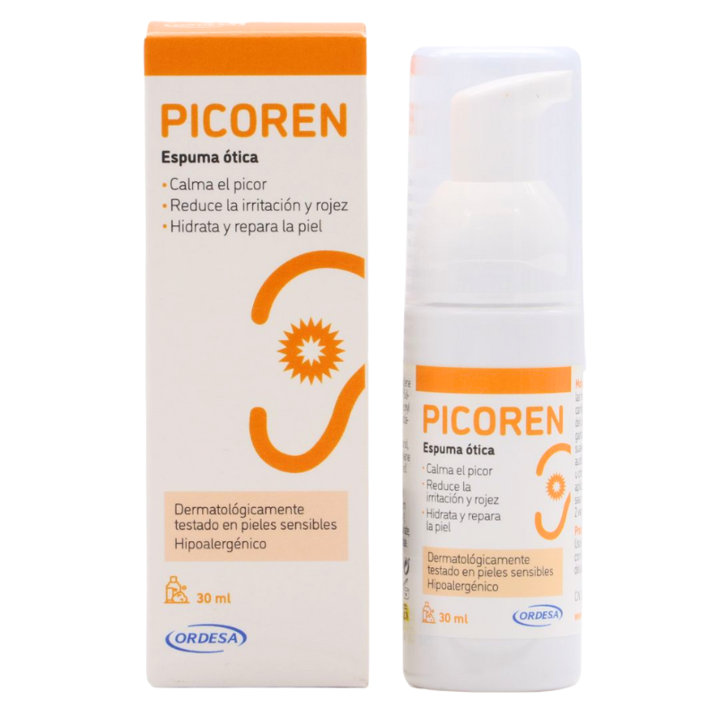 Picoren es una espuma ótica de aplicación tópica indicada para reducir el picor, la irritación, el enrojecimiento y la sequedad del