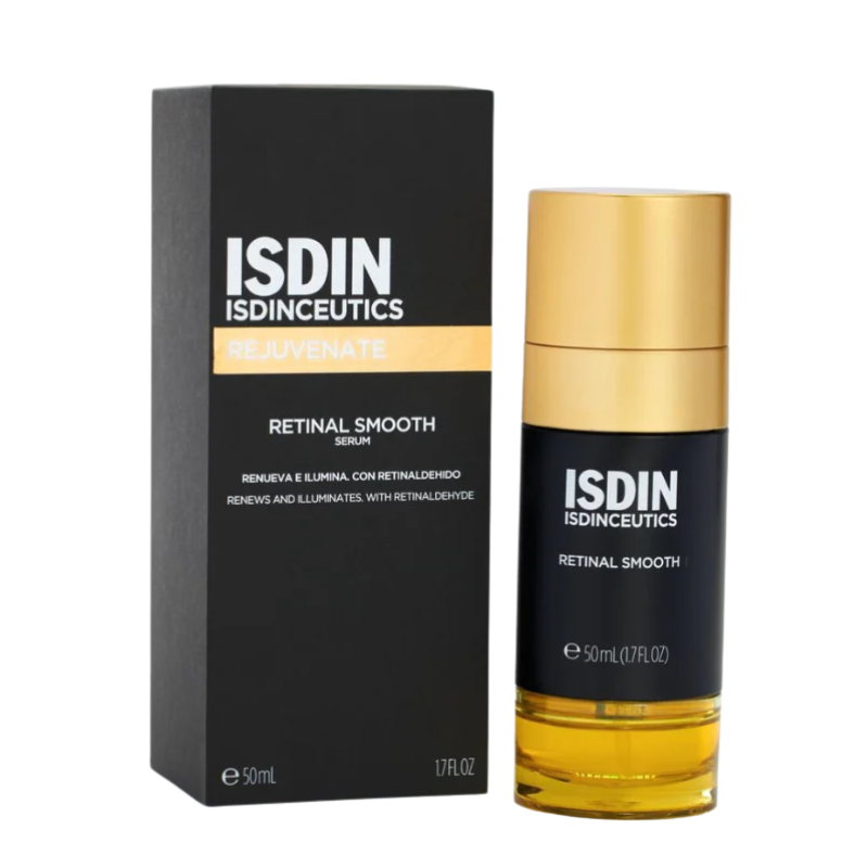 El Isdinceutics Retinal Smooth Serum 50 ml está formulado con retinaldehído, un potente derivado del ácido retinoico que combate eficazmente los signos del envejecimiento