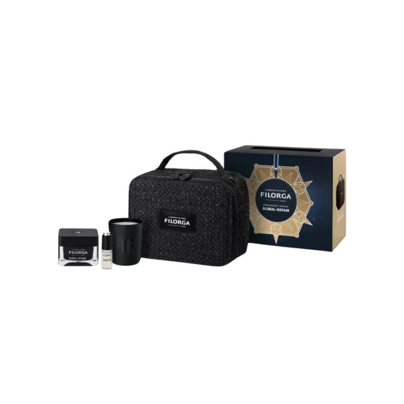 El set Filorga Global Repair es un tratamiento de lujo diseñado para el rejuvenecimiento y la revitalización de la piel madura. Este conjunto incluye la Global Repair Advanced Creme de 50 ml, una crema intensiva antienvejecimiento; el Elixir de 5 ml, un suero concentrado para una hidratación profunda y recuperación de luminosidad; y una Vela Aromática que transforma tu rutina de cuidado en una experiencia sensorial placentera y relajante.