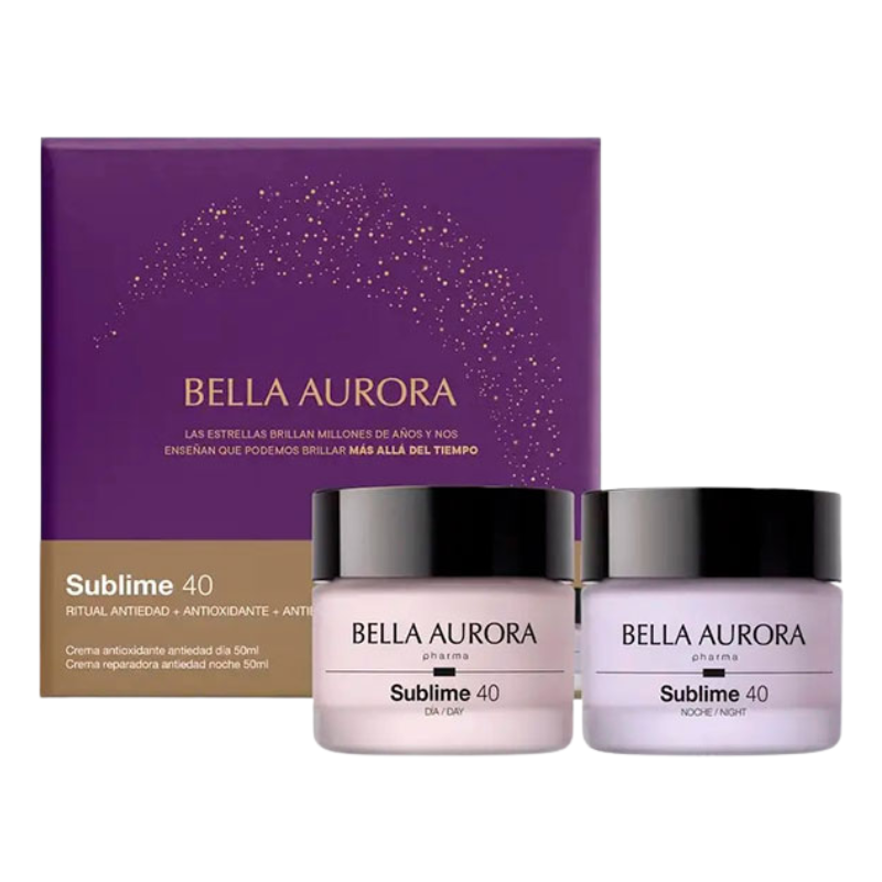 Bella Aurora Pack Sublime 40 Crema día y noche es un pack que ilumina, y trata los signos de envejecimiento de la piel y contiene: