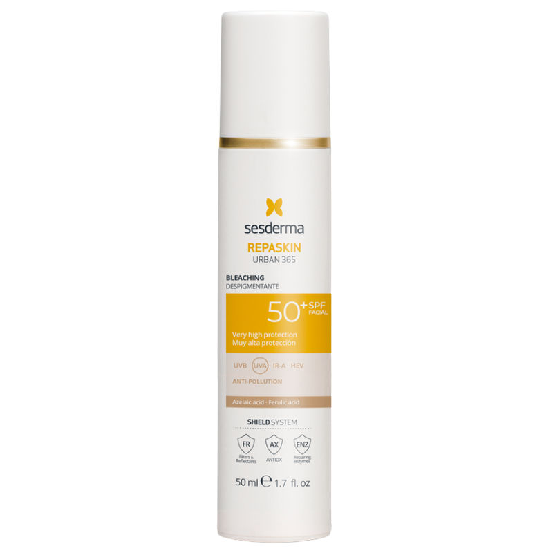 Protector solar facial fluido con acción despigmentante que unifica el tono de la piel. De textura cremosa, reduce la apariencia de las imperfecciones y previene su formación.