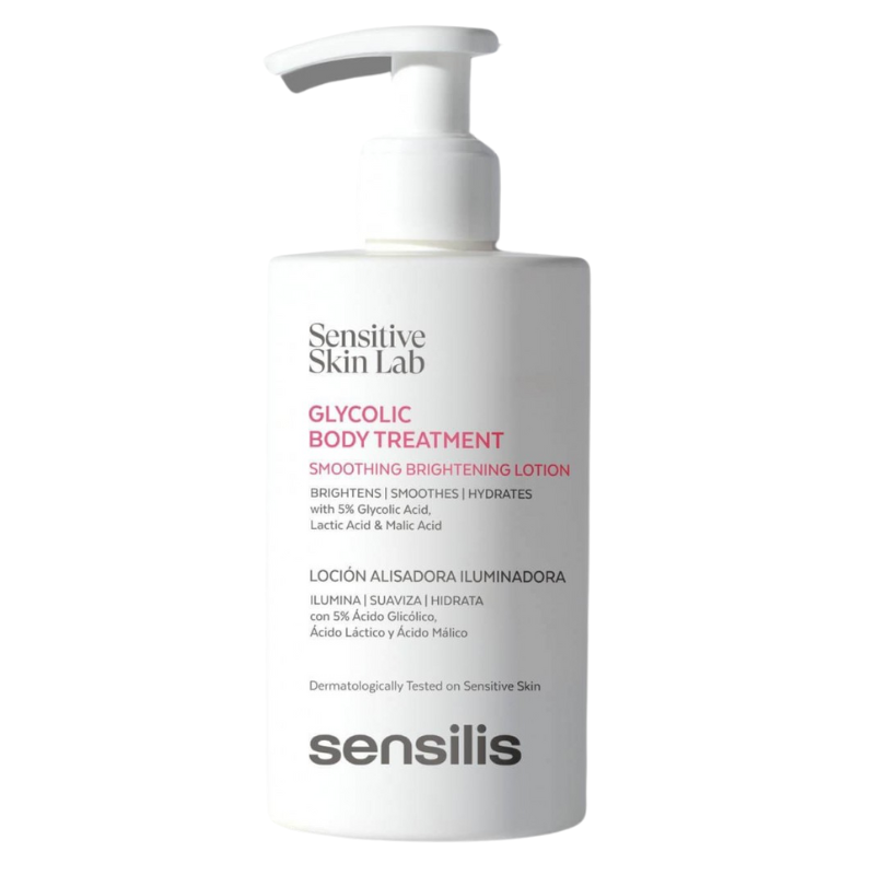Loción corporal alisadora e iluminadora, con 5% de Ácido Glicólico, Ácido Láctico y Ácido Málico. Envase de 200 ml.