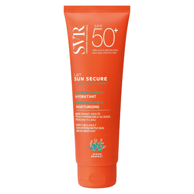 Leche fluida y aterciopelada de muy alta protección dermatológica: SUN SECURE Lait SPF50+ es apto para el rostro y el cuerpo, su textura aterciopelada se funde con la piel y deja una película hidratante invisible y no grasa. Su delicado aroma veraniego hará que quieras aplicarlo una y otra vez.