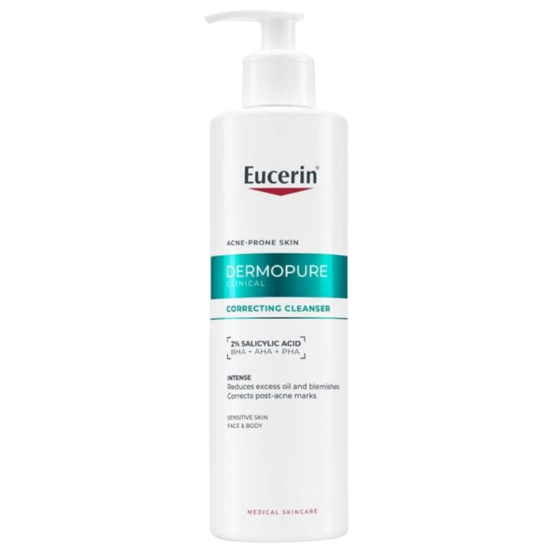El Gel Limpiador Concentrado Eucerin Dermopure está especialmente formulado para la piel grasa, ofreciendo un triple efecto que combate las imperfecciones, manchas y brillo. Con un contenido del 2% de Ácido Salicílico, este gel limpiador post-imperfecciones es una solución efectiva para los desafíos comunes de la piel grasa. Puede ser utilizado en el rostro y cuerpo.