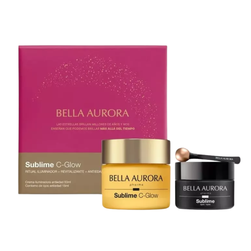 El Pack Bella Aurora Sublime C-Glow combina dos fórmulas avanzadas para el cuidado de la piel: una crema iluminadora de 50ml y un contorno de ojos de 15ml. Este dúo está diseñado específicamente para ofrecer un tratamiento integral que potencia la luminosidad, la hidratación y la protección antioxidante en el rostro.