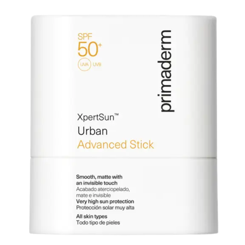 Primaderm XpertSun Urban Advanced Stick SPF50+ es un protector solar facial en stick para reaplicar durante el día.