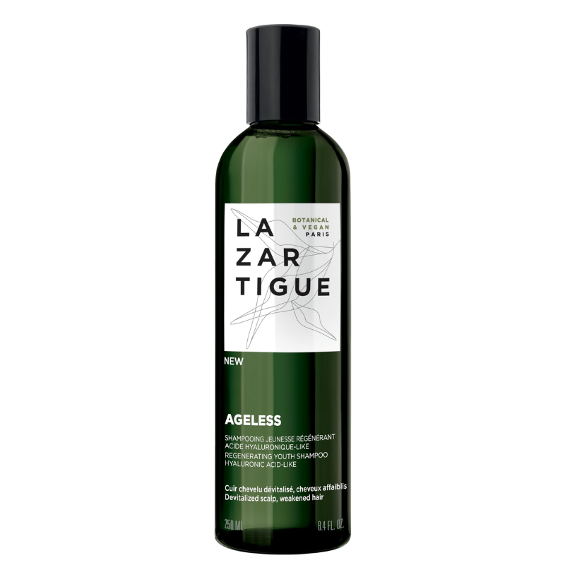 Lazartigue Ageless Champú Regenerador de la Juventud 250ml ha sido enriquecido con un ingrediente similar al ácido hialurónico, restaura la hidratación y devuelve la densidad al cabellado afinado. Su acción antioxidante ayuda a preservar la belleza del cabello y ayuda a lucir un cabello radiante de brillo y extremadamente suave. El 94% de los ingredientes son de origen natural.