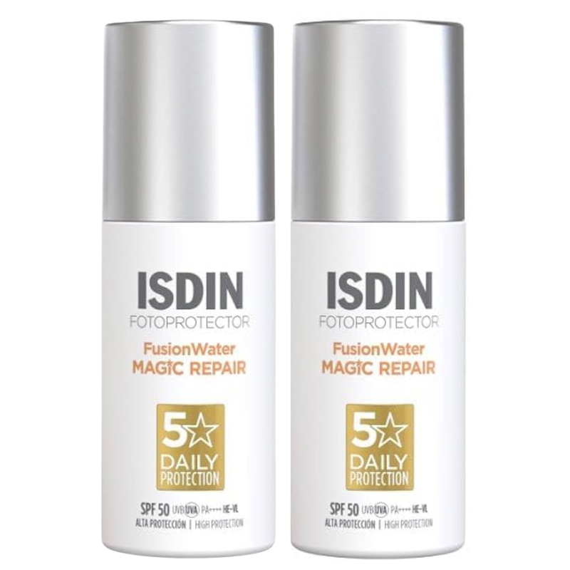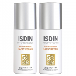 ISDIN Fotoprotector Fusion Water Magic Repair SPF50 50ml es un fotoprotector facial de base acuosa que ayuda a aportar hidratación intensa y es de absorción inmediata. Ofrece una triple acción antifotoenvejecimiento, ayudando a proteger, reparar y revertir la oxidación cutánea.