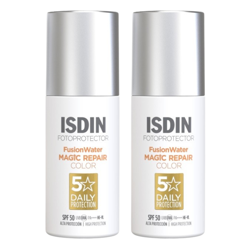 Protege tu piel con Fusion Water MAGIC Repair Color SPF 50, el protector solar facial de uso diario con color y triple acción antifotoenvejecimiento. De fase externa acuosa y textura ultraligera, unifica el tono, disimula imperfecciones e hidrata la piel intensamente.