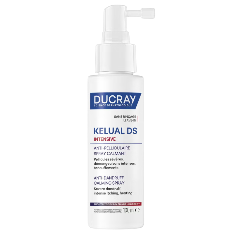 El spray calmante KELUAL DS INTENSIVE actúa como una solución SOS refrescante contra las crisis, para eliminar la caspa, el picor y la sensación de quemazón desde la primera aplicación