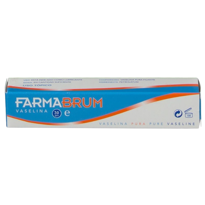 Farmabrum Vaselina Pura - 30g, 1 Unidad. Esta indicada como lubrificante en general, se puede utilizar en exploraciones ginecológicas y rectales, también para la colocación de sondas y aplicación de apósitos. Es un lubricante natural a base de vaselina.