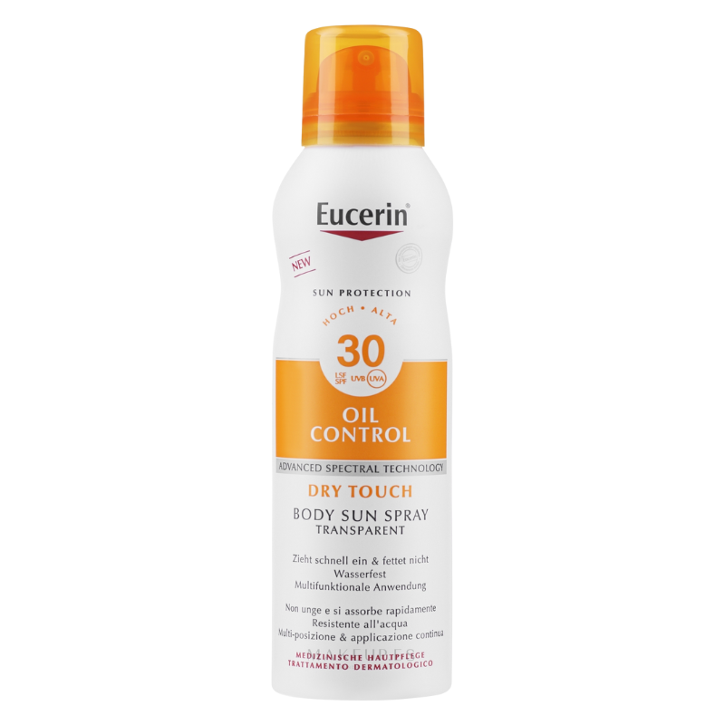 Spray transparente de protección solar superior para la piel sensible y propensa al acné, de fácil aplicación.