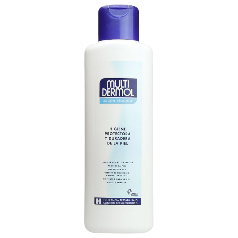 Multidermol jabón líquido, activa y regenera en cada lavado el equilibrio fisiológico de la piel combinado una eficaz limpieza con una potente protección.