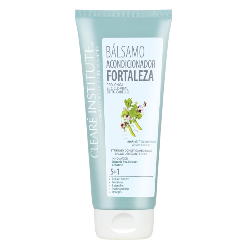 El bálsamo acondicionador fortaleza de Clearé Institute es un tratamiento que desenreda y acondiciona el cabello, estimulando su crecimiento y fortaleza. Está formulado para hombres y mujeres que enfrentan problemas de caída del cabello. Contiene ingredientes naturales y ecológicos, con un 97% de su composición de origen natural. Su fórmula incluye AnaGain, un extracto de guisante orgánico y creatina, que ayuda a frenar la caída del cabello en un 85%, estimula su crecimiento, redensifica en un 56%, calma el cuero cabelludo y proporciona un cabello más manejable, suave, hidratado y luminoso. Este bálsamo acondicionador mejora la salud del cabello y prolonga su ciclo de vida, devolviéndole brillo y vitalidad.