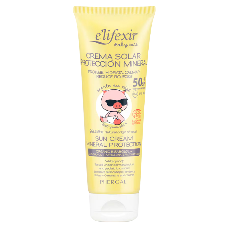La Crema Solar Mineral Protección SPF50 de Elifexir Baby Care está formulada para proteger la piel sensible de los bebés desde el nacimiento. Este protector solar mineral proporciona alta protección contra los rayos UVA, UVB e IR-A, siendo adecuado para pieles atópicas y sensibles. Su composición incluye ingredientes de origen natural, como Agua frutal de Granada BIO, que hidrata y regenera la piel, y Natura Olive, que aporta flexibilidad y protección. El Cacao Amazónico contribuye a la regeneración e hidratación de la piel, mientras que el Bisabolo natural y el aceite de Caléndula BIO calman y reducen las rojeces, ofreciendo frescor y confort. La crema ha sido testada dermatológica y pediátricamente, asegurando un cuidado seguro y eficaz. Contiene un 99,5% de ingredientes naturales y filtros minerales, es resistente al agua, hipoalergénica y tiene un perfume 100% natural. Certificada por Ecocert Greenlife, refuerza la función barrera de la piel y calma al bebé.