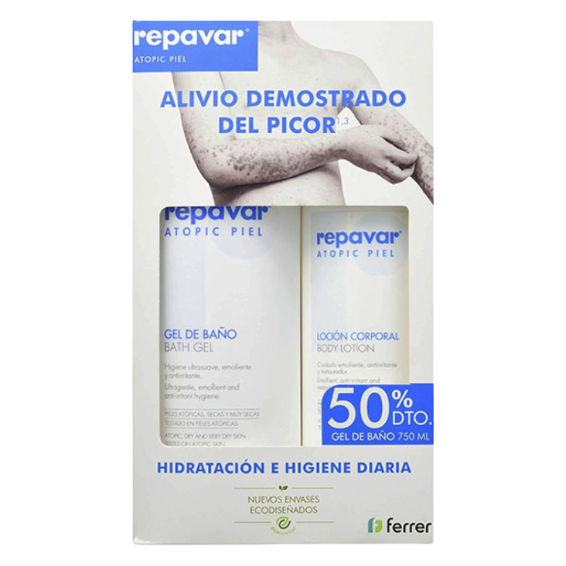 Pack Atopic Piel Loción + Gel de baño al 50%, la loción corporal para piel atópica tiene acción reparadora, emoliente y protectora, y promueve el mantenimiento y la mejora de la estructura epidérmica ejerciendo un efecto preventivo y calmante. Su fórmula está enriquecida con ingredientes activos que alivian el picor y refuerzan la barrera cutánea agredida. Su textura no grasa es de fácil aplicación y rápida absorción. El gel de baño está formulado a base de ingredientes activos con acción antiirritante que calman el picor y protegen la barrera cutánea agredida y la descamación propia de las pieles con tendencia atópica. Leer instrucciones antes de utilizar el producto.