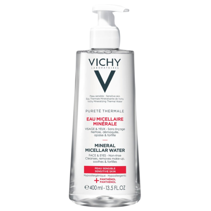 Una agua micelar eficaz, enriquecida con Agua Mineralizante de Vichy y pantenol calmante.