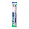 Tipo de cepillo: Normal.Tamaño: medio.Forma de la cabeza: Ovalada.Material de las fibras: nylon 0,20 mm Número de filas: 3-4 en colores verde (extremo), azul (Centro) y blanco (contorno) del cabezal.Número de penachos por fila: 30 penachos en 3-4 filasDureza: media.Características particulares: los penachos del extremo del cabezal están inclinados en diagonal para alcanzar las zonas más inaccesibles de la boca.Mango de copoliester, polipropileno y TPE con zonas estriadas para mejor agarre del dedo pulgar.El mango tiene sección romboide lo cual conduce la posición del cepillo a formar un angulo de 45º con la encia.Esta posición es la idonea para la técnica del Dr Bass que permite la higiene sobre los dientes y bajo la linea de las encias.