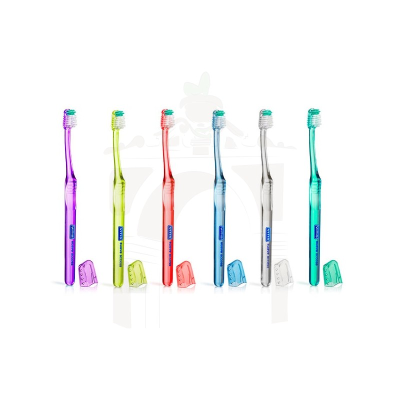 Cepillo de dientes con cabezal pequeño que permite acceder a las zonas de difícil acceso (zonas posteriores de la boca, especialmente piezas