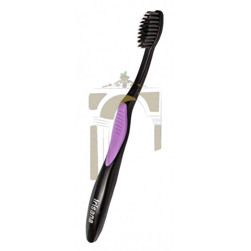 Los filamentos del cepillo dental IRISANA están fabicados de PBT (polibutileno de teraftalato) al que se integran compuestos de acción antibacteriana permanente y Carbón Activo, aplicando las últimas tecnologías de la higiene bucodental.