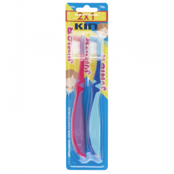 Kin Cepillo Junior 2x1 es un duplo de cepillos dentales para la higiene bucal diaria de los niños de entre 6 y 12 años.