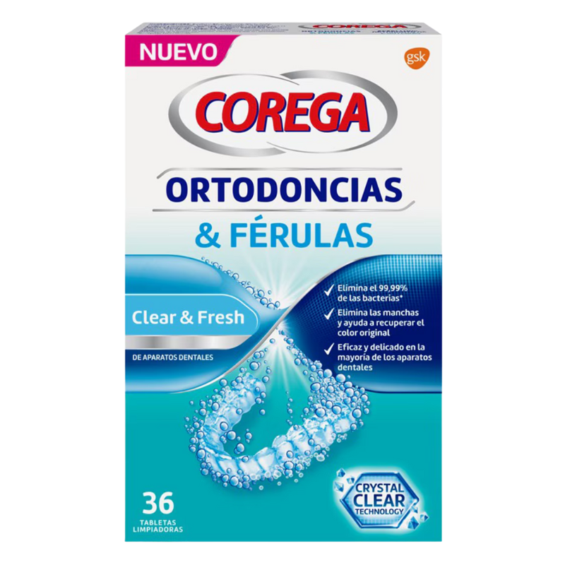 Corega Ortodoncias & Férulas son unas tabletas limpiadoras para aparatos dentales con propiedades antibacterianas.