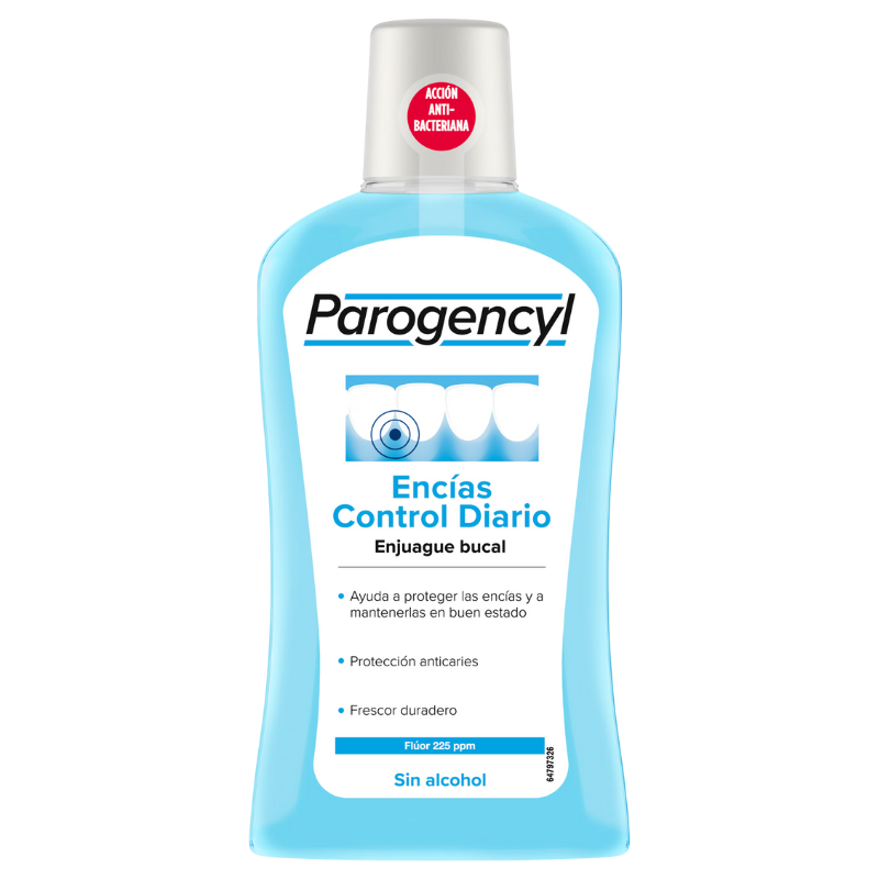 El enjuague bucal Parogencyl Control ayuda a reducir sensibilidad gingival y el sangrado de las encías.