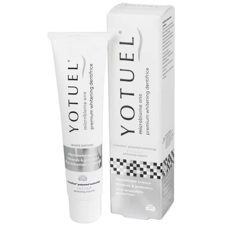 Dentífrico que ayuda a lograr unos dientes más blancos, al tiempo que protege el microbioma oral.