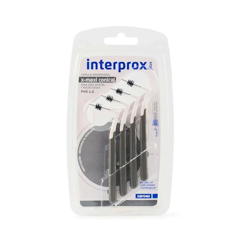 El Cepillo Interprox Plus X-Maxi Soft elimina la placa bacteriana acumulada entre los espacios interproximales de 2,6 milímetros. Gracias a su cabezal en angulo permite el acceso a espacios interdentales en la zona molar y premolar. Su diseño permite una introducción perpendicualr que evita causar heridas en las encías. Cada cepillo dispone de un capuchón protector individual, para mayor higiene y mejor transporte. Es eficaz a la vez que protege los dientes de caries y otras enfermedades periodontales.