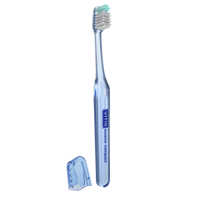 Características particulares: El cepillo tiene un tamaño reducido que te permite llevarlo siempre contigo. Filamentos suaves y dureza media, facilita el cepillado en las zonas de difícil acceso gracias a la forma redondeada del extremo del cabezal. Elimina al máximo la placa bacteriana (biofilm oral) gracias a los filamentos de Tynex de alta calidad, extremos redondeados, texturizados y perfil ondulado que permiten además, un perfecto acceso a los espacios interdentales. Mango anatómico. Cuello maleable para adaptarse prefectamente a la boca durante el cepillado, con capuchón protector.