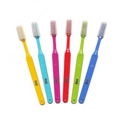 Tipo de cepillo: Normal.Tamaño: Pequeño.Forma de la cabeza: Ovalada.Material de las fibras: Tynex.Número de filas: 4Número de penachos por fila: 10.Dureza: Duro, medio y suave.Características particulares:Cepillo dental diseñado para eliminar placa bacteriana. Capuchón protector para mantener los filamentos agrupados y en condiciones óptimas.