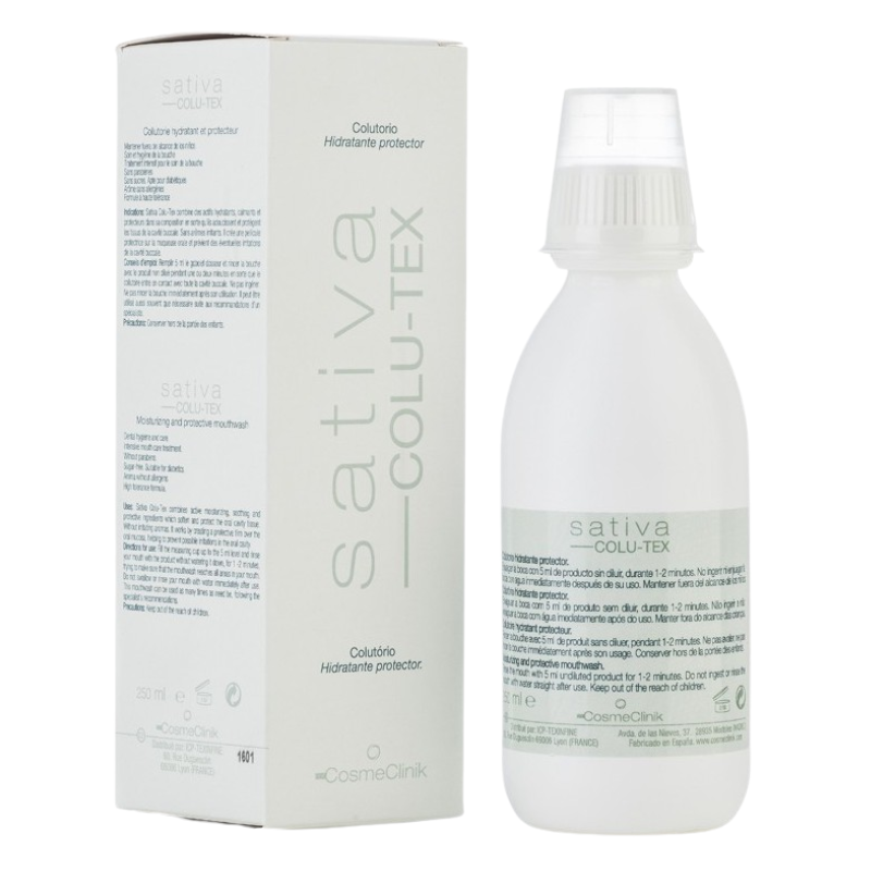 Colutorio que combina activos hidratantes, calmantes y protectores en su composición, que suavizan los tejidos de la cavidad oral. Sin aromas irritantes.