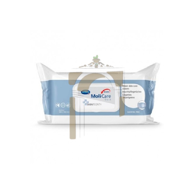 Las toallitas MoliCare Skin son suaves a base de spunlace humedecidas con una loción limpiadora libre de PEG.