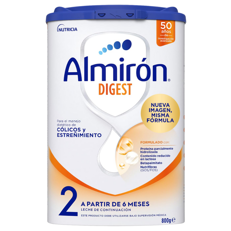 Almirón Advance Digest 2 a partir de los 6 meses especialmente diseñada para el manejo dietético de cólicos y estreñimiento.