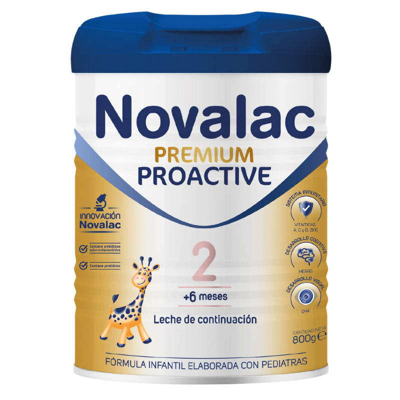 Leche descremada, aceites vegetales (palma, coco, soja, Brassica napus), lactosa, maltodextrinas, galactooligosacáridos (leche), aceite de pescado (DHA), emulsionante (lecitina de soja), citrato cálcico, fosfato cálcico, citrato de potasio, cloruro cálcico, vitaminas [L-ascorbato sódico (C), acetato de DL-alfa tocoferilo (E), nicotinamida (niacina), D-pantotenato cálcico, clorhidrato de tiamina, riboflavina, acetato de retinilo (A), clorhidrato de piridoxina (B6), ácido fólico, fitomenadiona (K), D-biotina, colecalciferol (D), cianocobalamina (B12)], fosfato dipotásico, cloruro de magnesio, difosfato férrico, citrato sódico, cloruro de sodio, L-isoleucina, L-triptófano, aceite de Mortierella alpina (ARA), L-cistina, L-fenilalanina, óxido de magnesio, cloruro de potasio, nucleótidos [ácido citidina 5´-monofosfórico (CMP), uridina 5´-monofosfato disódico (UMP), ácido adenosina 5´-monofosfórico (AMP), inosina 5´-monofosfato disódico (IMP), guanosina 5´-monofosfato disódico (GMP)], sulfato de zinc, antioxidantes (extracto rico en tocoferoles, palmitato de ascorbilo), yoduro de potasio, fermentos lácticos (B. lactis), selenito de sodio, sulfato cúprico, sulfato de manganeso.