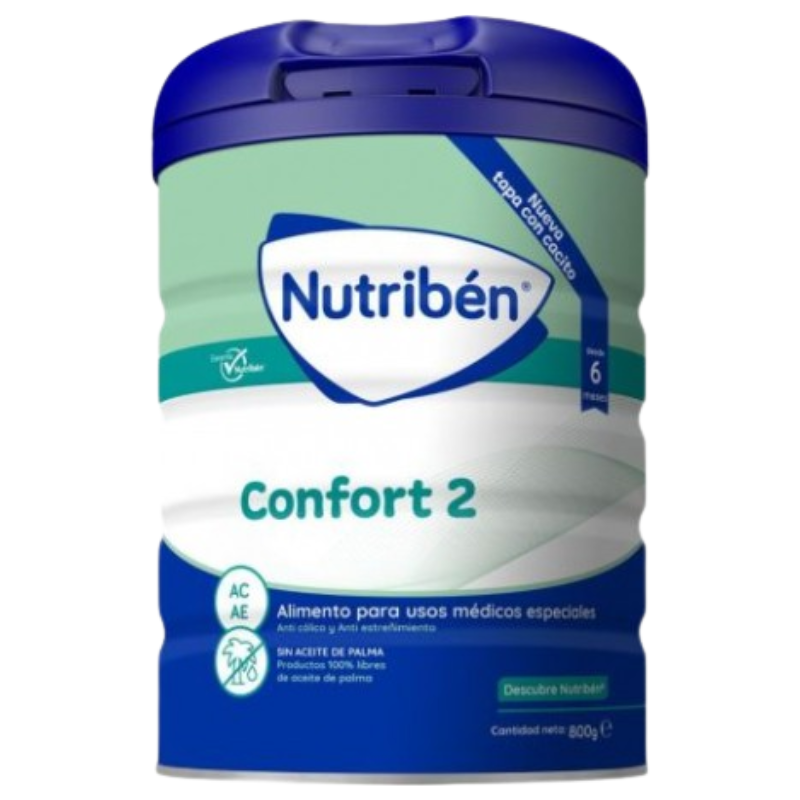 Nutribén Confort 2 es una leche de continuación para bebés de 6 a 12 meses, formulada para ayudar a aliviar los trastornos digestivos leves como los cólicos y el estreñimiento.