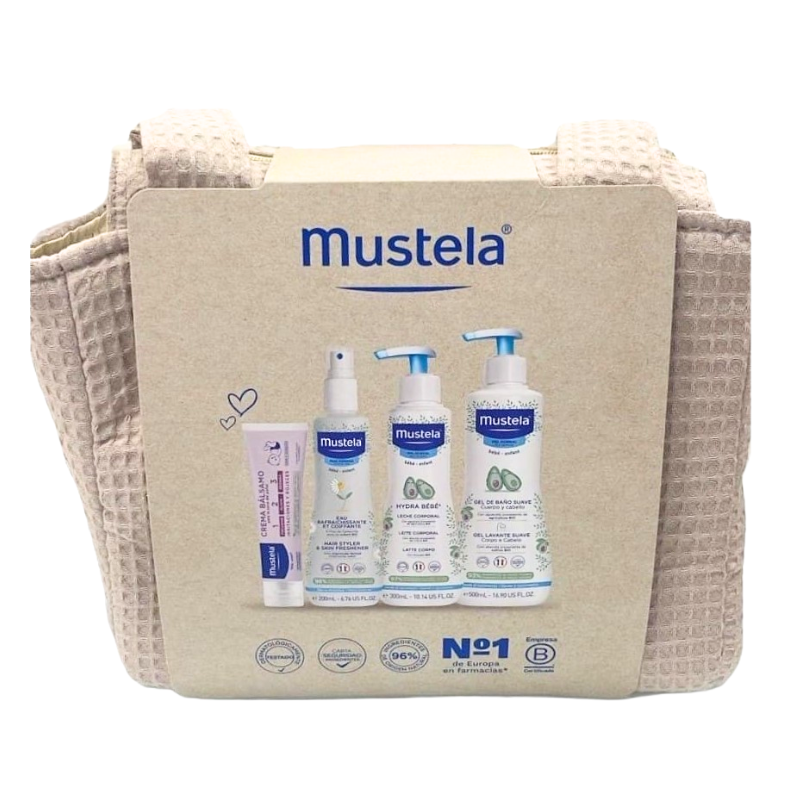 Bolsa de Mustela para el carrito de bebé. Incluye 4 productos básicos para el cuidado de los más pequeños de la casa.