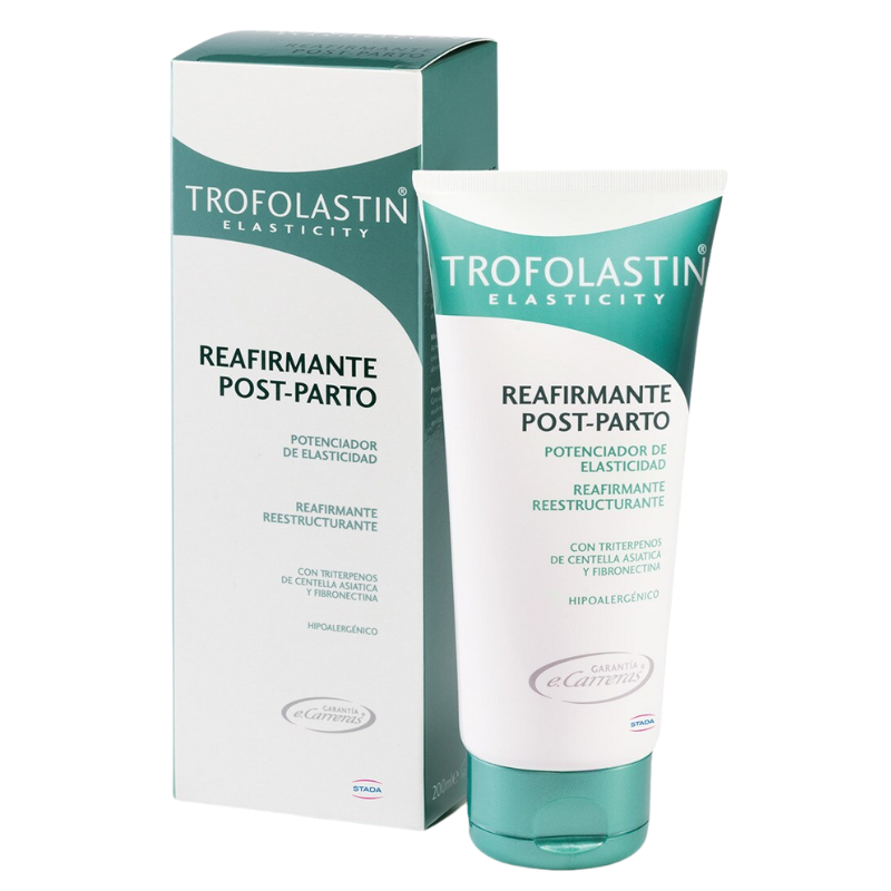 Trofolastin postparto combate la flacidez y recupera la elasticidad de la piel. Por eso su utilización está indicada para después del parto ya que mejora los niveles de elasticidad en el tejido del abdomen. Está formulada con centella asiática. Cuyas propiedades regenerantes. Reparadoras y cicatrizantes mejoran el aspecto de la piel.