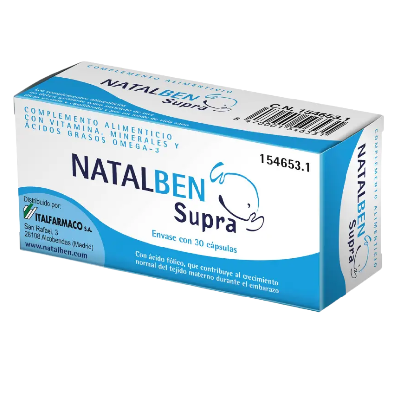 Consumir preferentemente antes de la fecha indicada en el envase.Mantener el producto fuera del alcance de los niños.No superar la dosis diaria recomendada.No utilizar como sustitutivo de una dieta variada y equilibrada y un estilo de vida saludable.No utilizar en caso de hipersensibilidad al pescado ya que Natalben Supra lleva en su formulación ácidos grasos omega-3 (DHA) provenientes del pescado.Conservar en lugar fresco y seco.