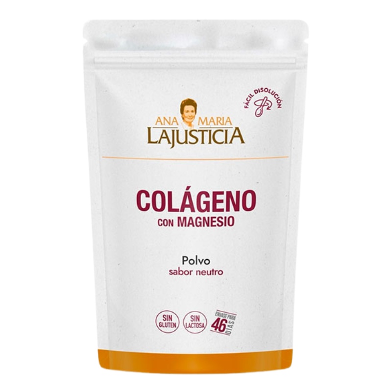 Ana Maria Lajusticia Colágeno con Magnesio en formato polvo con Sabor Neutro es un complemento alimenticio fundamental para la regeneración y el mantenimiento de los tejidos conectivos.