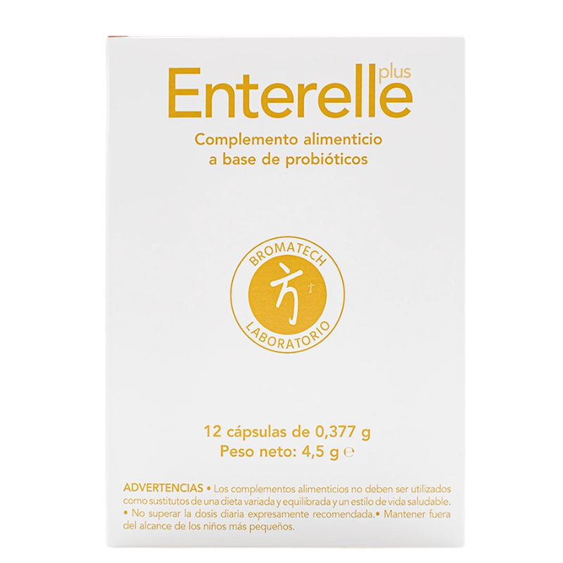 Bromatech Enterelle Plus es un probiótico en presentación de 12 cápsulas formulado con cepas de probióticos que contribuyen al equilibrio intestinal. Este producto es adecuado para equilibrar la flora del tracto intestinal afectada por la ingestión de antibióticos.