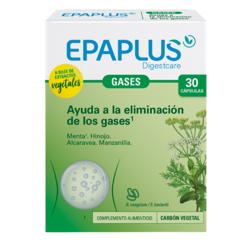 Epaplus Digestcare Gases es un complemento alimenticio que favorece la eliminación de los gases así como la detoxificación del tracto digestivo.