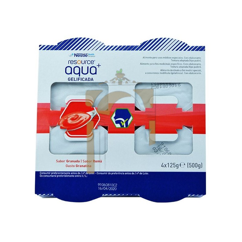 Agua de textura adaptada tipo pudin para facilitar la hidratación en pacientes con dificultades de deglución.